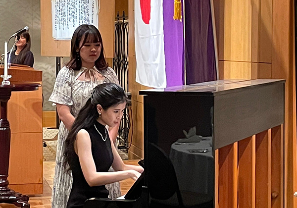 6月8日(木)に横浜ベイホテル東急にて第1677回例会を開催しました。 ゲストを恒例のフェリス女学院大学生によるミニコンサートを行い、華やか例会となりました。 金子会長期は今回が最終となり、次回は和田期決起集会が行われます。